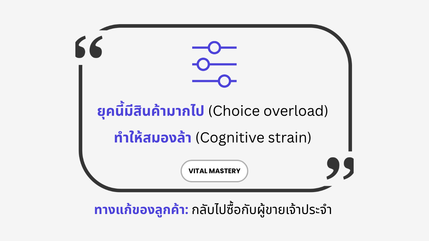 1. ยุคนี้มีสินค้ามากไป (Choice overload) ทำให้สมองล้า (Cognitive strain)